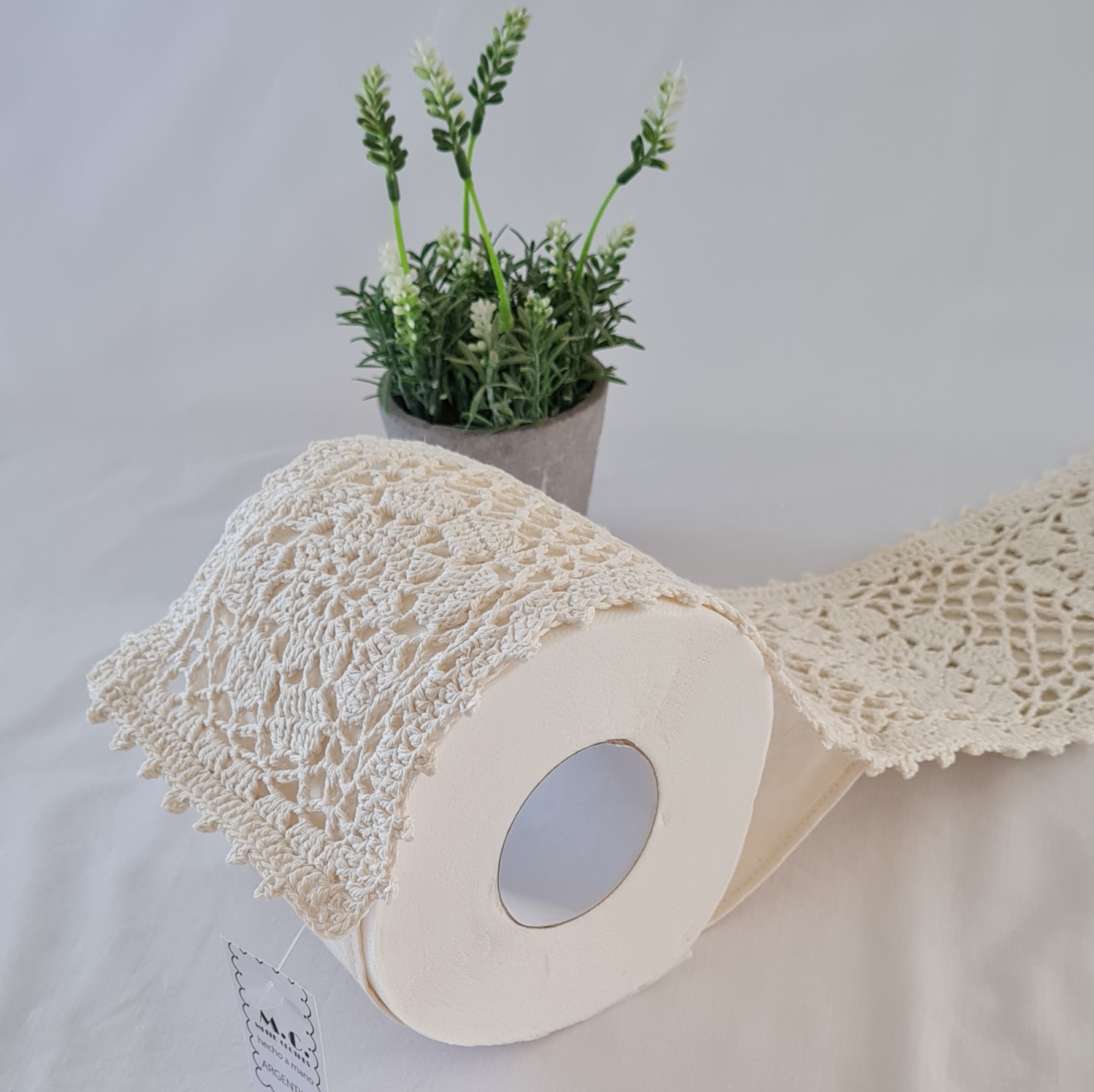 El porta rollo está realizado a mano, al crochet, con capacidad para 2 rollos.